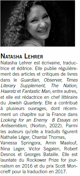 Katie Shireen Assef traduit de français vers l’anglais, principalement des œuvres de fiction. Elle a participé dans La Fabrique des Traducteurs au CITL en 2019 où elle a travaillé sur un texte de Valérie Mréjen. Originaire de Minnesota, elle vit à Marseille, boit beaucoup de café et apprend l’italien.