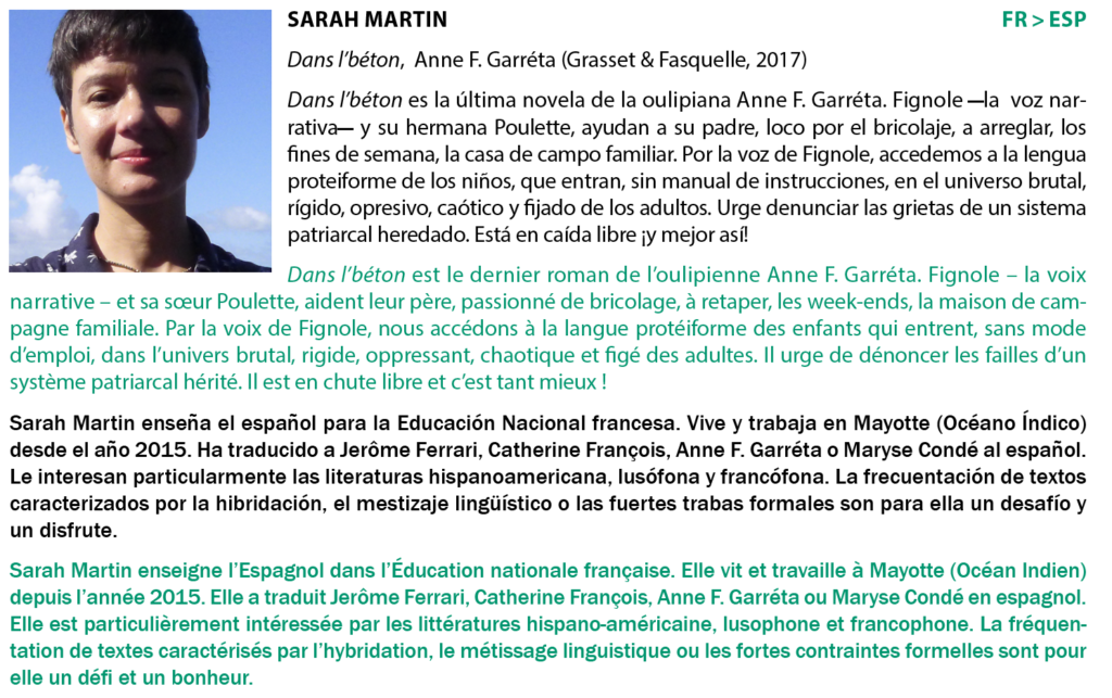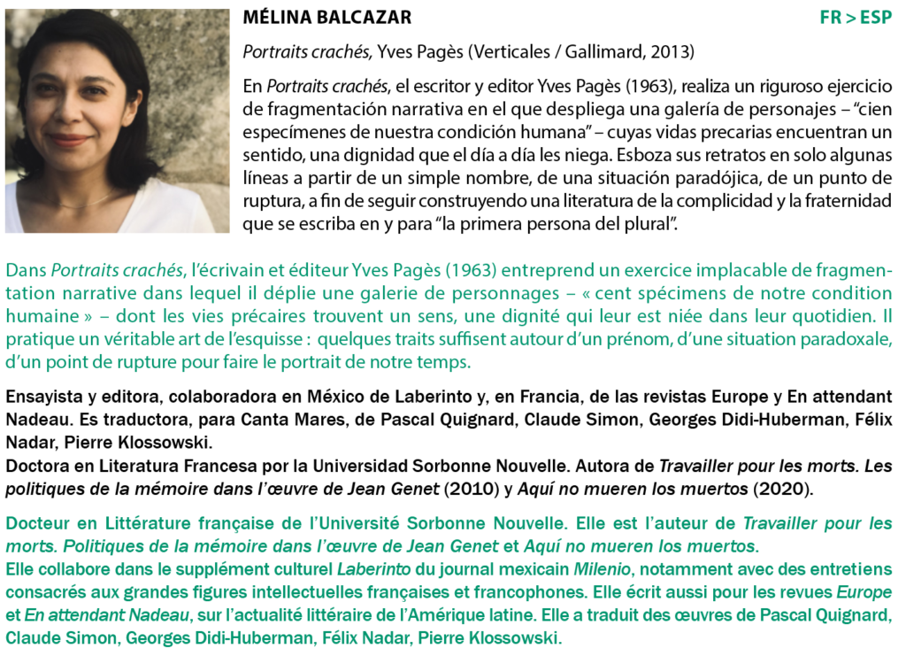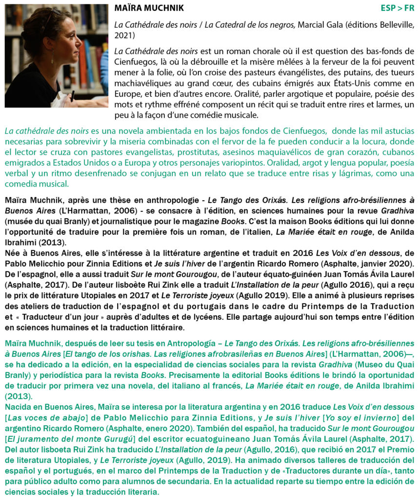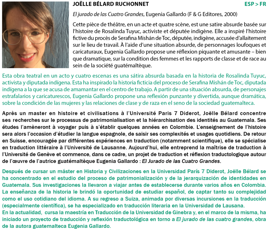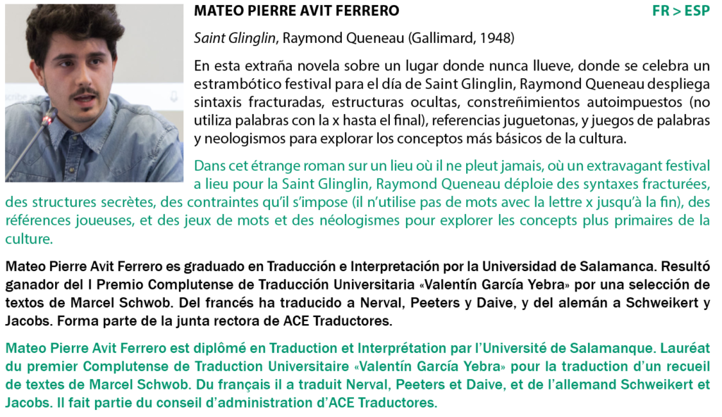 Cet atelier est organisé avec le soutien de La Sofia, de l’Institut français de Madrid, de la Residencia de Estudiantes, d’Acción Cultural Española (AC/E), d’ACE Traductores, de l’université Complutense de Madrid ainsi que de la fondation pour la culture suisse Pro Helvetia.