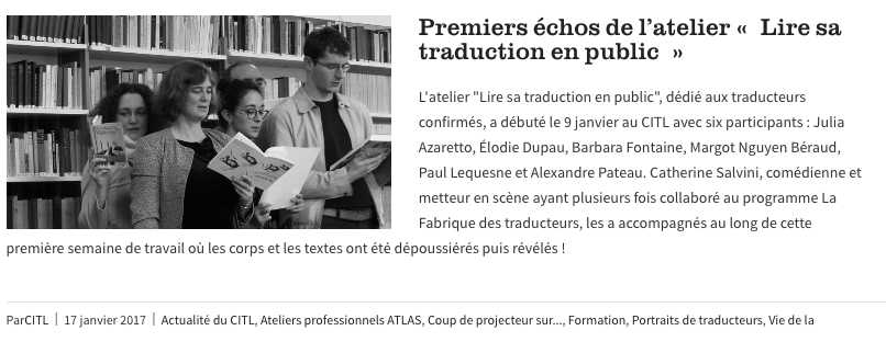 La lecture publique de fin d’atelier, le vendredi 20 janvier à 20h au CITL :