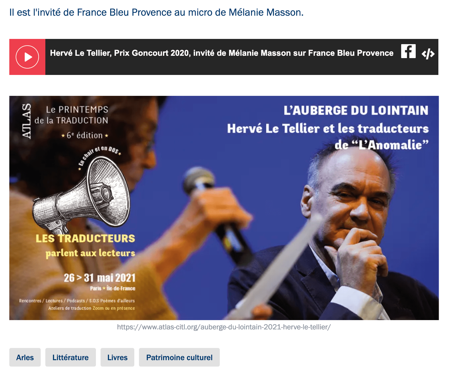 Avec le soutien de l’Institut français, ATLAS a inauguré en 2019 « L’Auberge du lointain », un format d’atelier qui propose à un auteur d’expression française une résidence d’une semaine au CITL d’Arles avec ses traducteurs au travail.