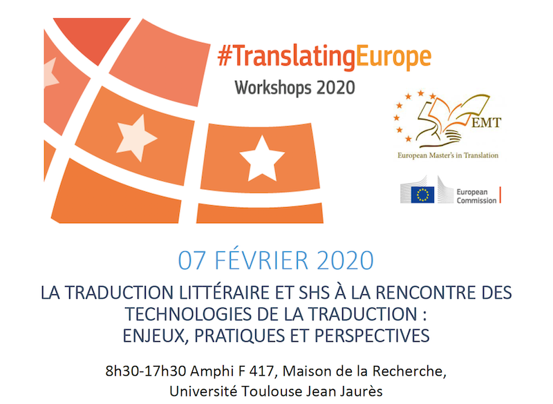 Vendredi 7 février, ATLAS présentera L’Observatoire de la traduction automatique lors de la journée d’ateliers organisée dans le cadre de « #TranslatingEurope Workshops 2020 par le Centre de Traduction, d’Interprétation et de Médiation Linguistique (CeTIM) de l’Université Toulouse Jean Jaurès. Avec de nombreux intervenants invités – enseignants, chercheurs, traducteurs professionnels –, il s’agira d’interroger l’utilisation des technologies de la traduction (traduction automatique, en particulier traduction neuronale, outils de TAO, corpus) dans les domaines de la traduction littéraire et SHS habituellement considérés comme « trop » créatifs pour la machine.