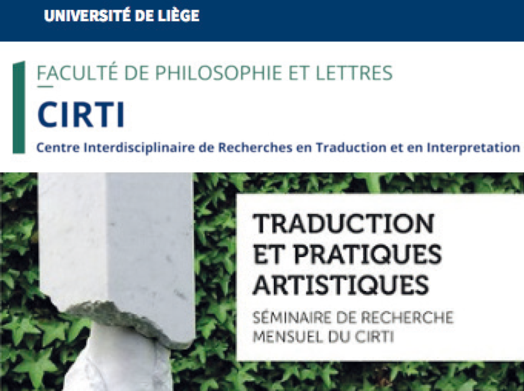 L’Unité de recherche CIRTI (Centre de Recherche en Traduction et en Interprétation) de l’Université de Liège vous invite à une série de séminaires de recherche sur le thème « Traduction et pratiques artistiques », à partir du 21 février 2018.