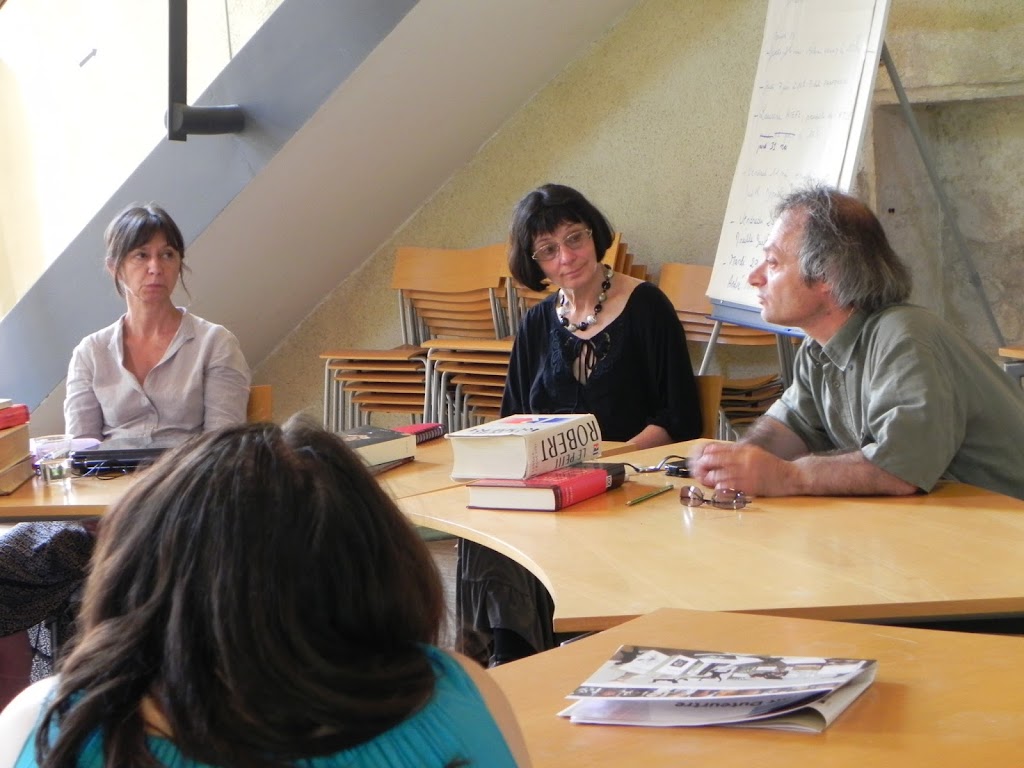 Vers le Collège Les Assises de traduction terminées, nous nous retrouvons tous les six autour d’une table ronde, face à