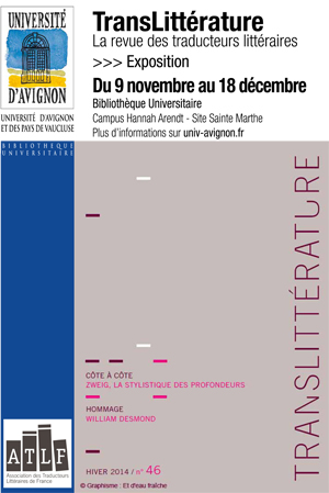 En 2016, TransLittérature aura vingt-cinq ans et peut s’enorgueillir d’être devenue une référence en matière de réflexion sur la traduction. Une exposition présentée à la Bibliothèque Universitaire d’Avignon du lundi 9 novembre au 18 décembre 2015, proposera un aperçu de son évolution et de quelques-uns de ses dossiers phares.