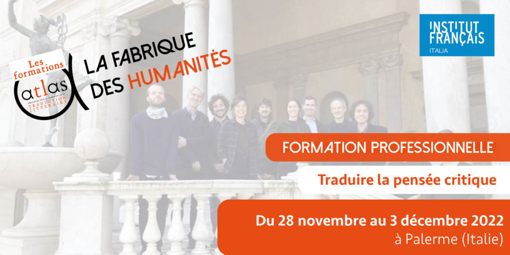Après le succès de l’atelier des philosophes en 2019 à Arles, et de l’atelier des historiens de l’art en 2021 à la Villa Médicis à Rome, ATLAS organise du lundi 28 novembre au samedi 3 décembre 2022, à l’Institut français de Palerme, un atelier quadrilingue français / allemand / anglais / italien, dans les domaines des humanités et des sciences sociales.