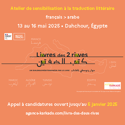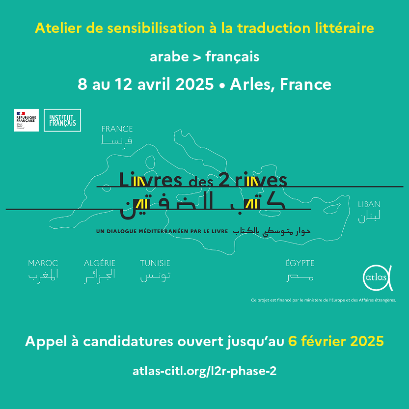 Dans le cadre du projet Livres des deux Rives, financé par le Ministère de l’Europe et des Affaires étrangères et piloté par l’Institut français, ATLAS, en collaboration avec l’Agence Karkadé, deux ateliers de sensibilisation à la traduction littéraire seront organisés au printemps 2025, à destination des étudiant·es et jeunes professionnel·les de la traduction :