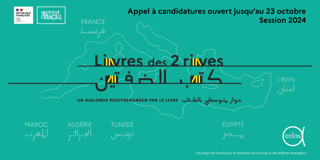 En 2024, Livres des deux rives – un dialogue méditerranéen par le livre, porté par l’Institut français, lance sa seconde phase et s’ouvre au Liban et à l’Égypte. Ce projet vise à soutenir le dialogue entre les sociétés civiles des rives Nord et Sud de la Méditerranée par des actions de coopération autour du livre.