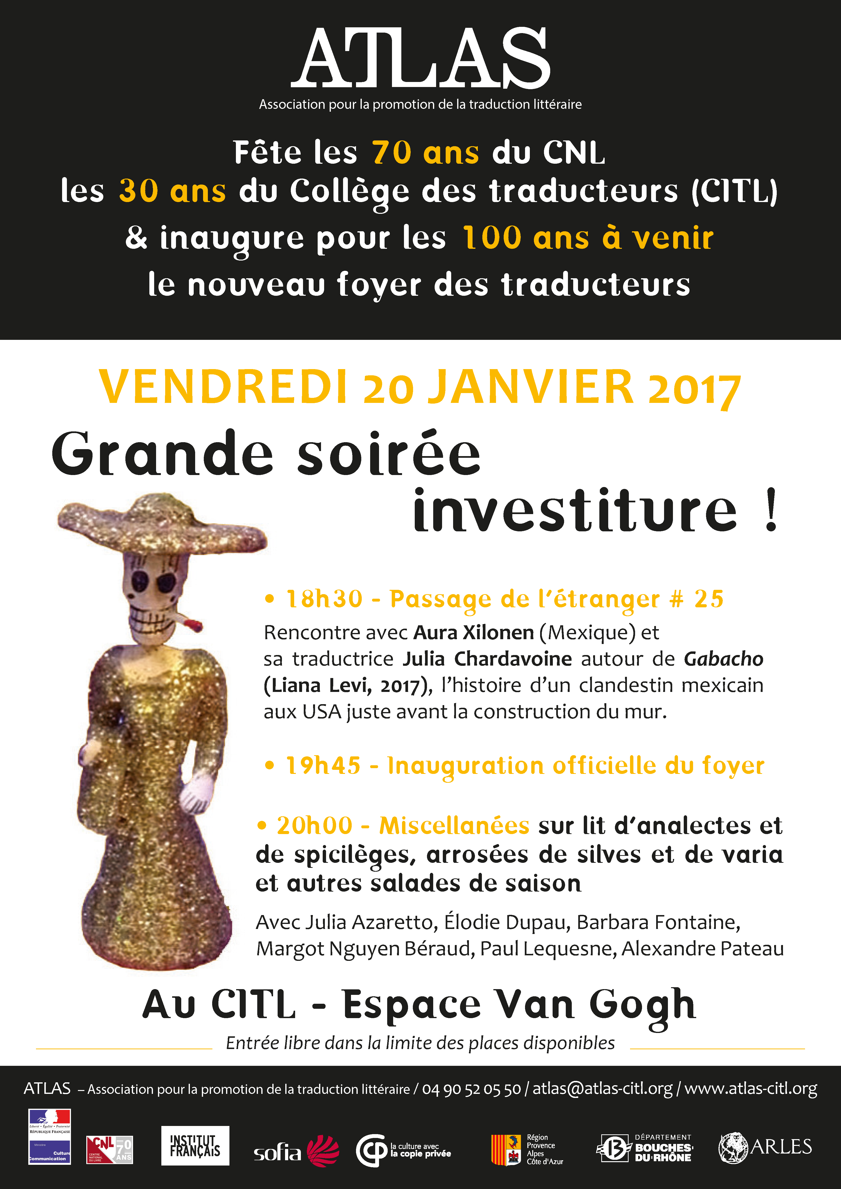 Une rencontre animée par Margot Nguyen Béraud, traductrice de l’espagnol et membre du conseil d’administration d’ATLAS et interprété par Antonia Estrada Linares, suivie de l’inauguration officielle du foyer des traducteurs rénové et d’une lecture des textes traduits par les six participants au stage professionnel « Lire sa traduction en public » coordonné par les comédiennes et metteurs en scène Catherine Salvini et Dominique Léandri.