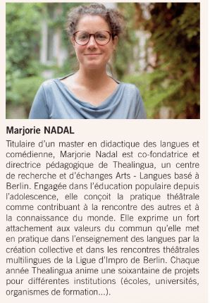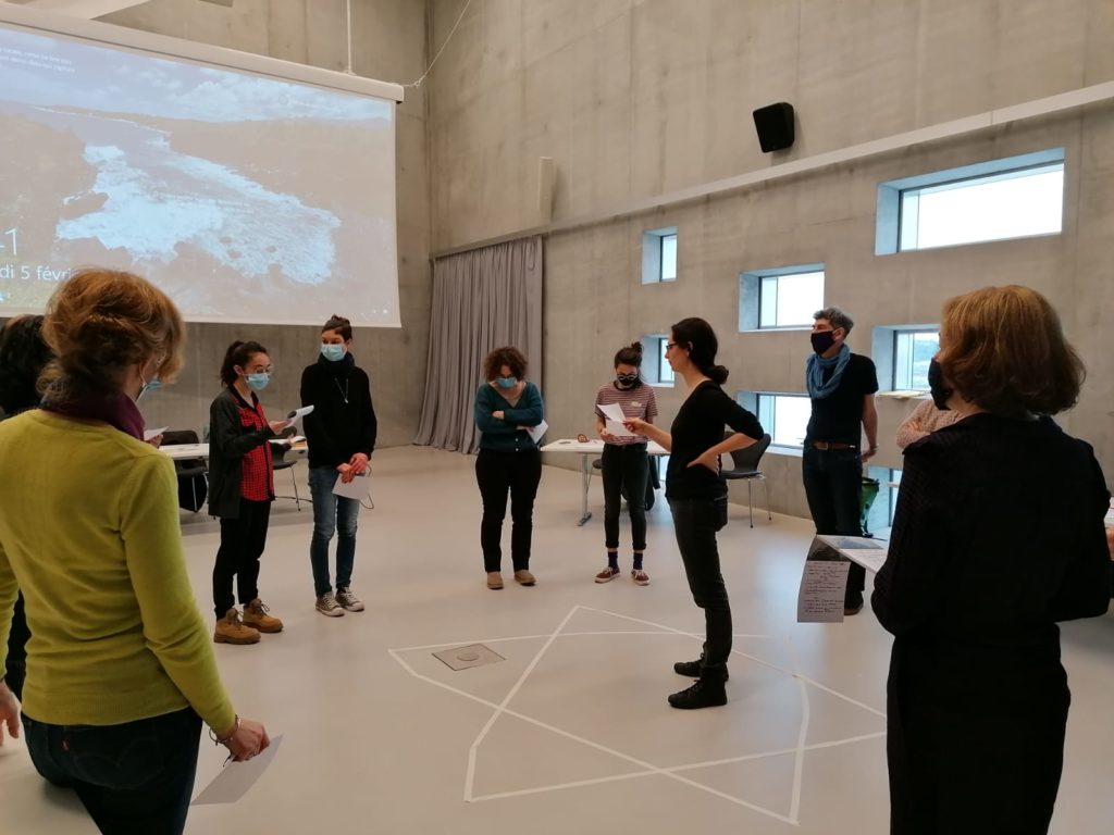 Lors de cette troisième session de formation, Marjorie Nadal et Margot Nguyen Béraud ont conjugué théâtre et traduction, proposant aux stagiaires d’élaborer collectivement des déroulés d’atelier ainsi que des simulations individuelles. Une attention particulière a été accordée à la mise en voix et en espace du plurilinguisme propre à ces publics. L’atelier a également donné une place importante aux retours d’expérience, mettant en présence des traducteurs souhaitant travailler en direction des publics primo-arrivants et d’autres ayant déjà animé des ateliers “Quai des langues”.