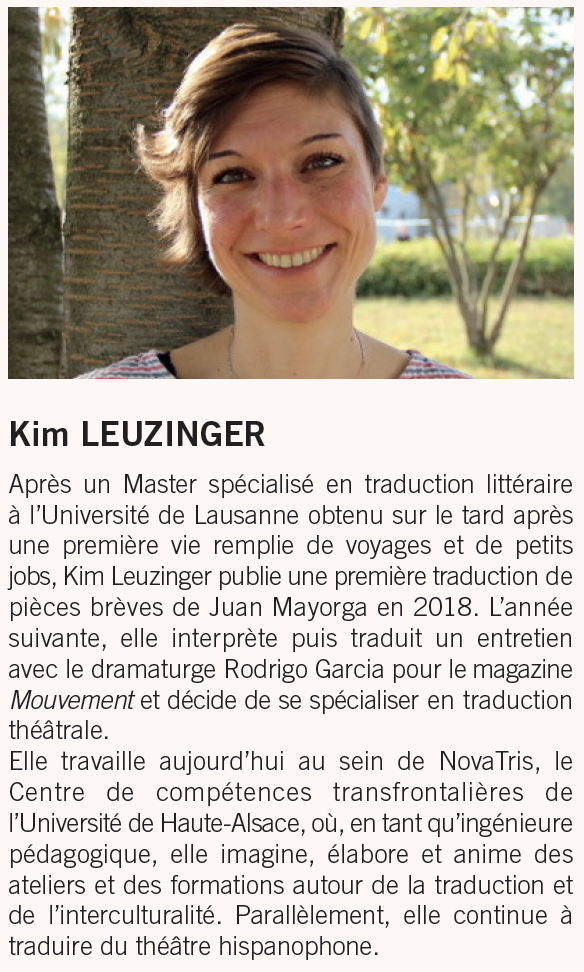• Kim Leuzinger / Traductrice de l’espagnol – pour Daisy, de Rodrigo Garcia (Les Solitaires intempestifs, 2014) / Théâtre
