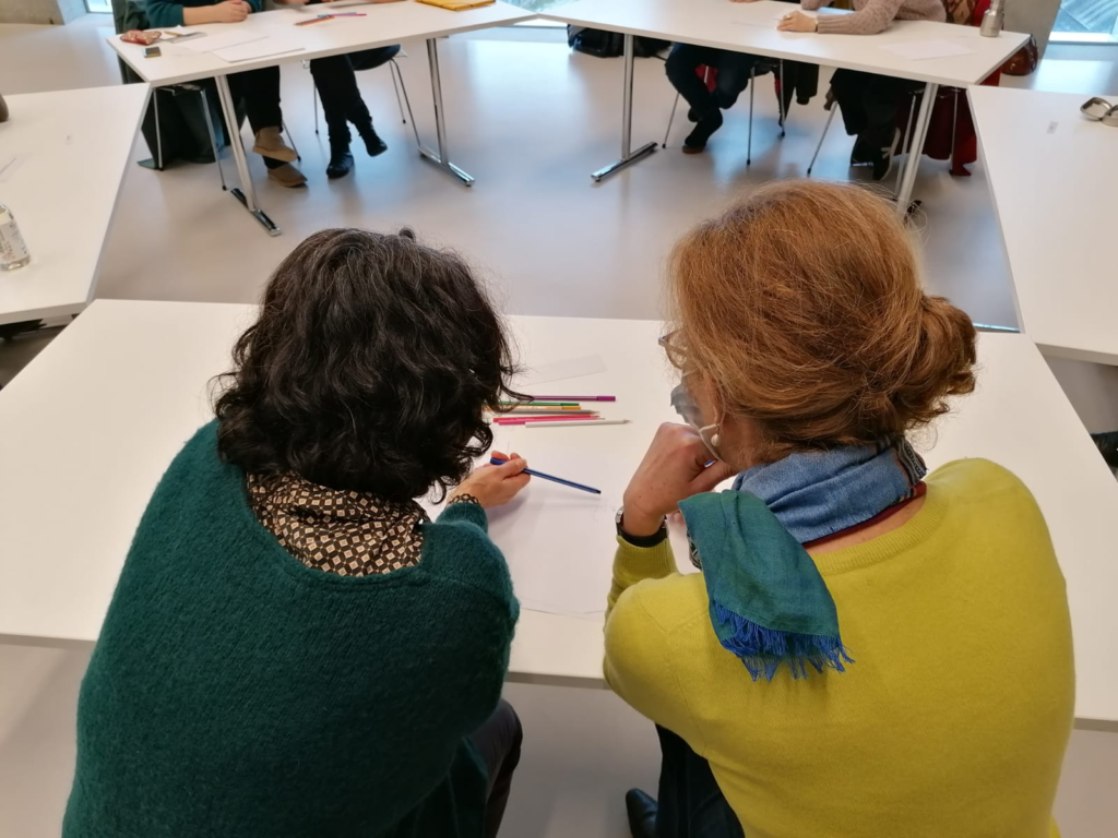 Lors de cette deuxième session de formation, afin de partager les méthodes, expériences et interrogations de chacun·e, Kim Leuzinger et Margot Nguyen Béraud ont proposé deux journées de mises en situation d’animation d’atelier, incluant également un retour d’expériences sur les 9 ateliers pratiques ayant déjà eu lieu. L’atelier a ainsi mis en présence des traducteur·ice·s souhaitant travailler en direction des publics primo-arrivants et d’autres ayant déjà animé de tels ateliers.