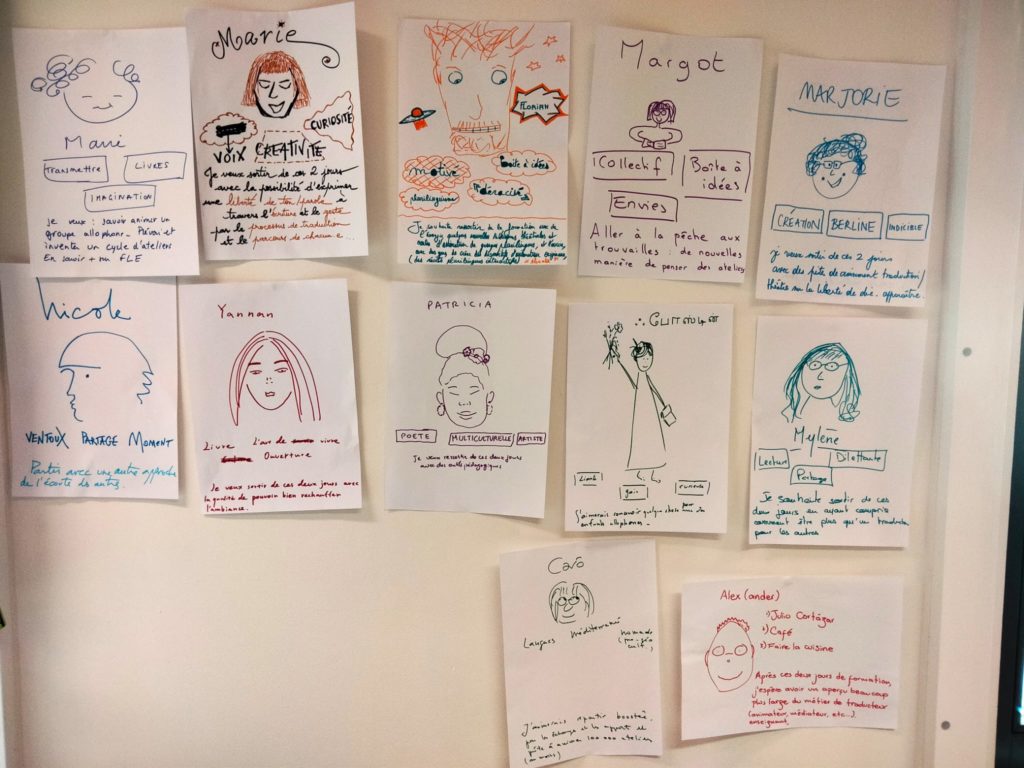 La formation a réuni un groupe de douze traducteurs littéraires professionnels, travaillant à partir de six langues étrangères : anglais, arabe, chinois, espagnol, italien, portugais. Les participants avaient candidaté sur la base d’un texte en langue étrangère à proposer en atelier de traduction à un public non professionnel. En effet, le but des ateliers “Traducteur d’un jour” (modèle développé par ATLAS depuis 2014) est de proposer aux participants une expérience de traduction et un travail d’écriture permettant de mesurer concrètement la part de créativité, choix, prise de risque que comporte l’activité de traduction littéraire. C’est aussi l’occasion de mettre en valeur la richesse culturelle et humaine apportée par la diversité des langues.