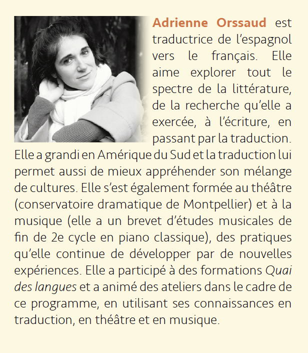 • Caroline Natali – traductrice de l’espagnol, de l’anglais et de l’italien avec un extrait d’On veut, texte théâtral de Nicolas Vercken
