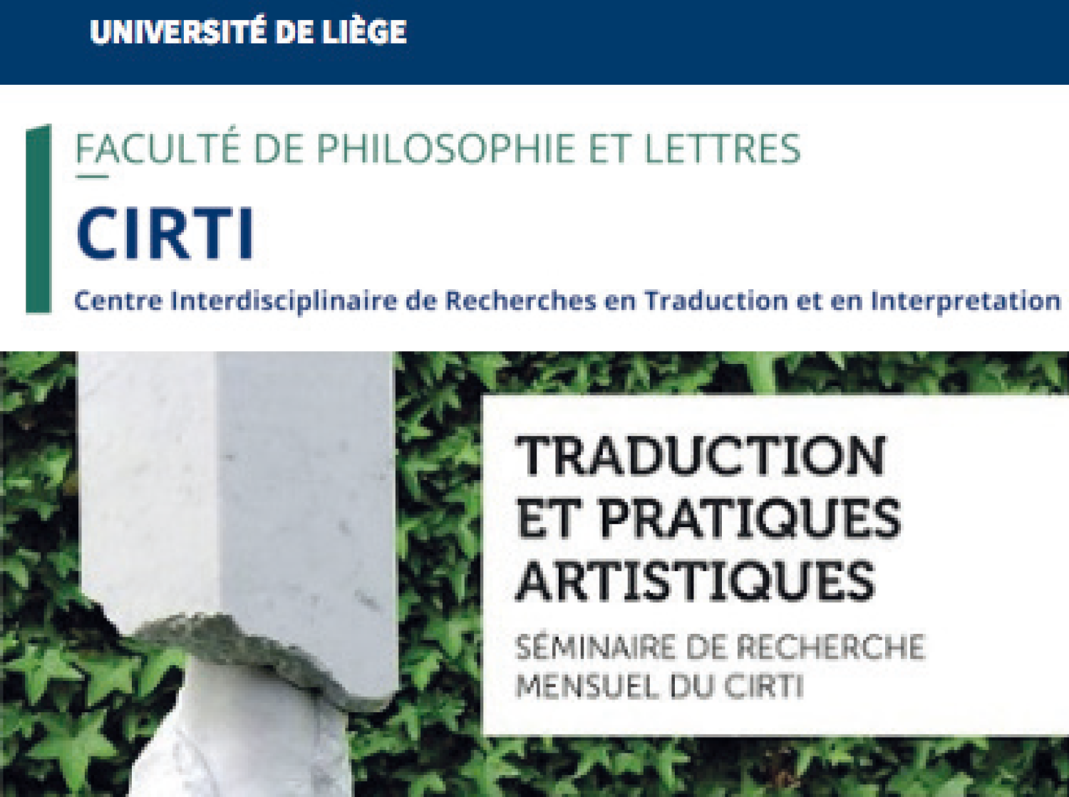 L’Unité de recherche CIRTI (Centre de Recherche en Traduction et en Interprétation) de l’Université de Liège vous invite à une série de séminaires de recherche sur le thème « Traduction et pratiques artistiques » au cours de l’année 2018.