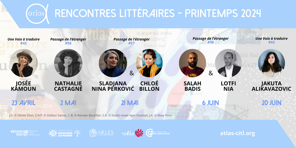 … ne sont certes pas des vents dominants. Mistral ou Tramontane l’emportent, et plus rares sont les lettres du monde qui nous viennent des Balkans, d’Italie ou d’Algérie. Avec Josée Kamoun, nous commencerons par recevoir, en guise d’introduction à ce printemps arlésien, l’autrice d’une déclaration d’amour à la traduction, initiée par Shéhérazade. Autre grande figure de la traduction, Nathalie Castagné nous invitera à célébrer l’accomplissement de son grand œuvre, la publication des œuvres complètes de Goliarda Sapienza. Nous retrouverons Chloé Billon, traductrice récompensée lors de nos dernières Assises de la traduction littéraire, avec Sladjana Nina Perkovic et, dans un registre très différent, Jakuta Alikavazovic, qui déplie son héritage bosnien en une nuit au Louvre. Salah Badis et son traducteur Lotfi Nia, enfin, nous apporteront un parfum d’Alger.