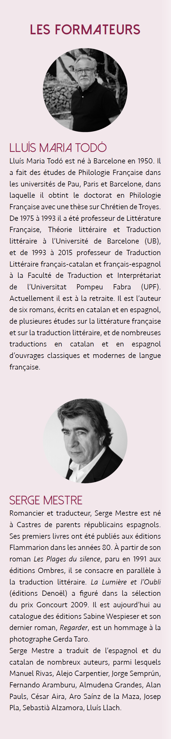 Du lundi 15 au vendredi 19 mai 2023, le Collège international des traducteurs littéraire accueille un atelier ViceVersa catalan ⇄ français composé de 8 traducteur.ices – 5 traduisant vers le français et 3 vers le catalan –, et de 2 traducteurs-coordinateurs : Lluís Maria Todó et Serge Mestre.